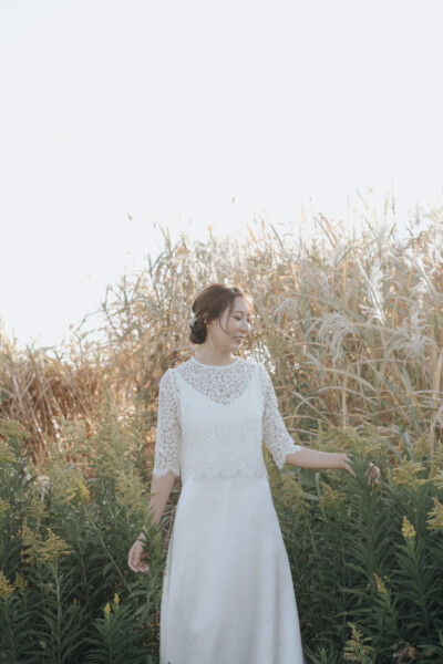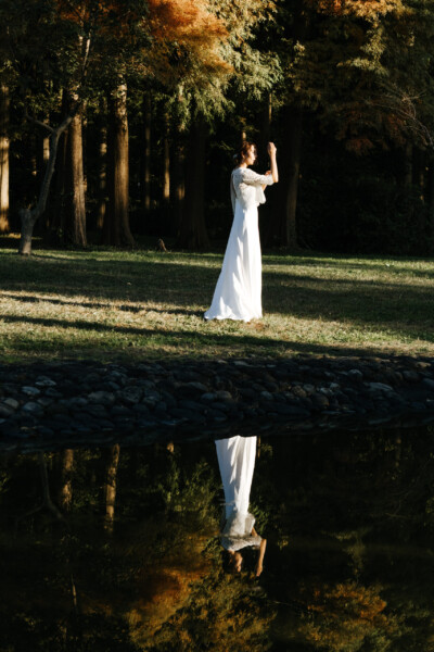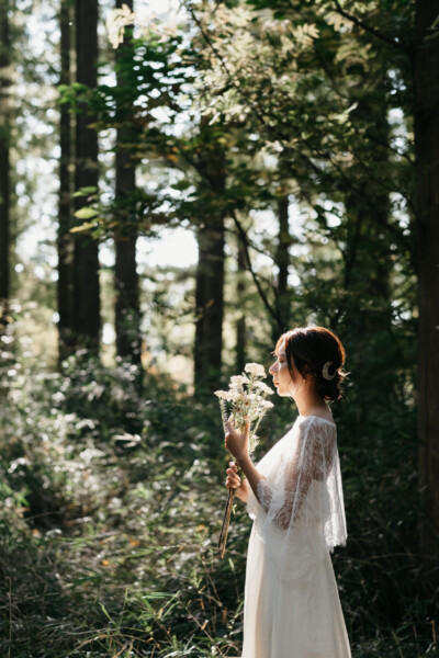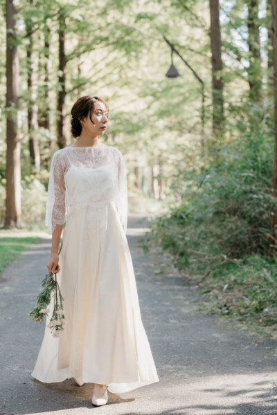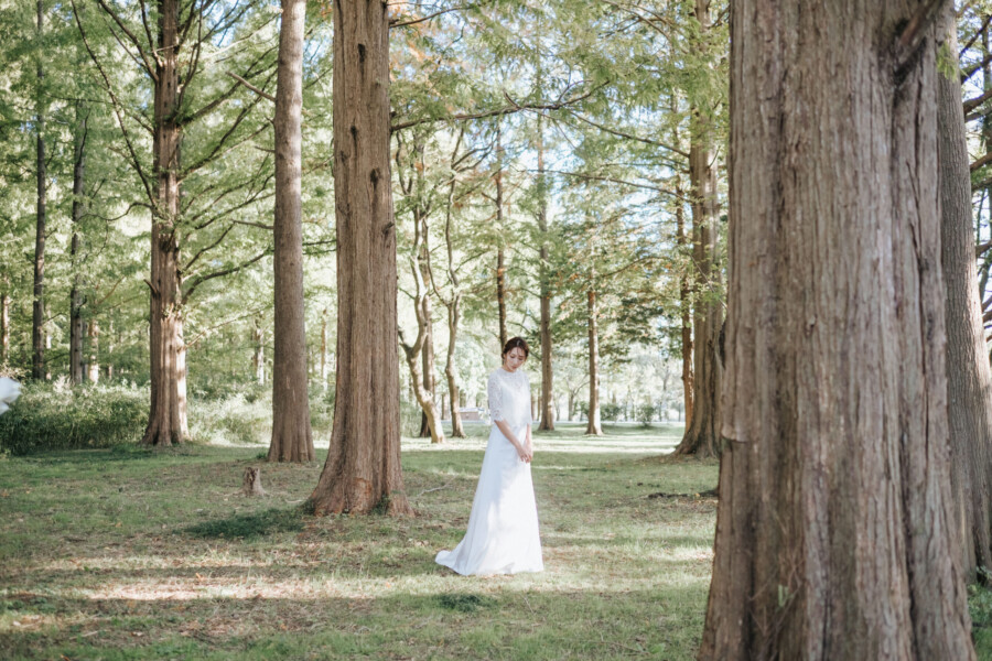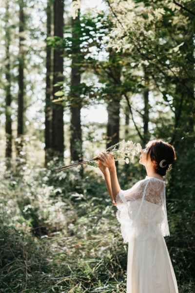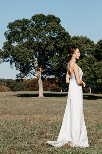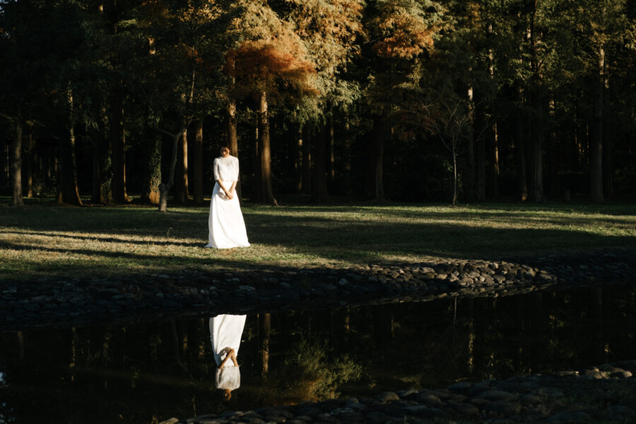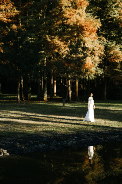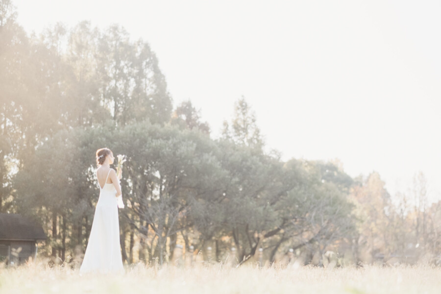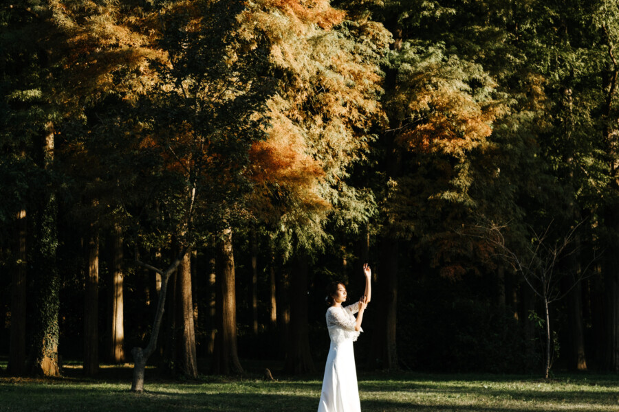 秋の雰囲気は残しつつも、光と自然とドレスが一体となった撮影をすることができました。