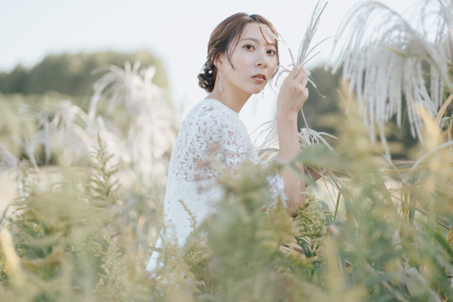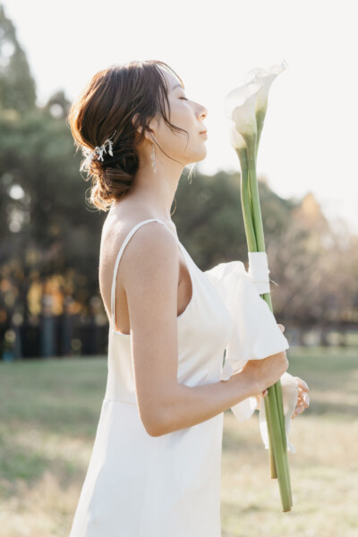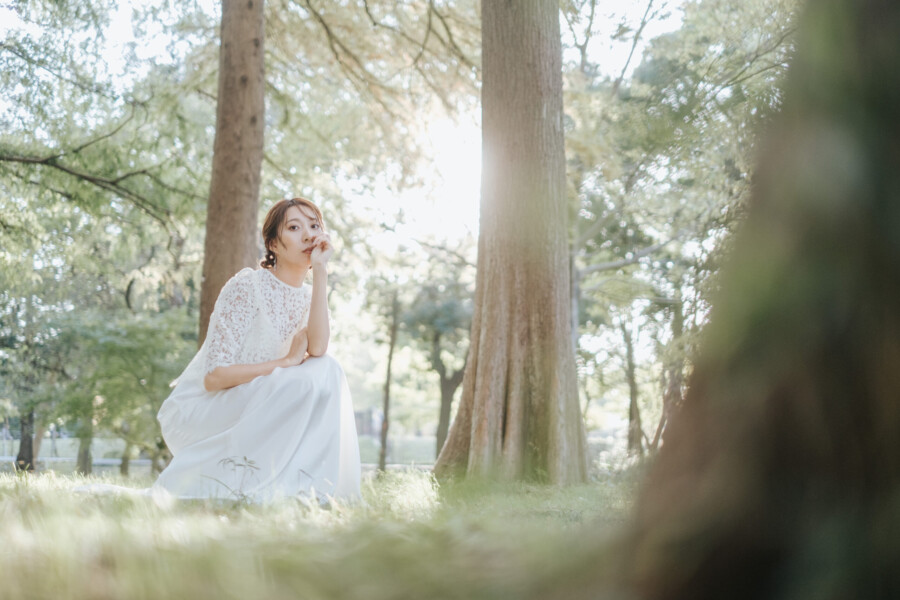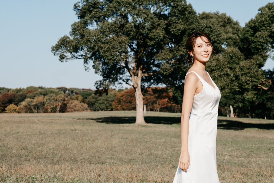 もともと違う場所で撮影する予定でしたが、ドレスの似合う場所かつブランディングに合っている場所ということで、水元公園にて撮影を行いました。